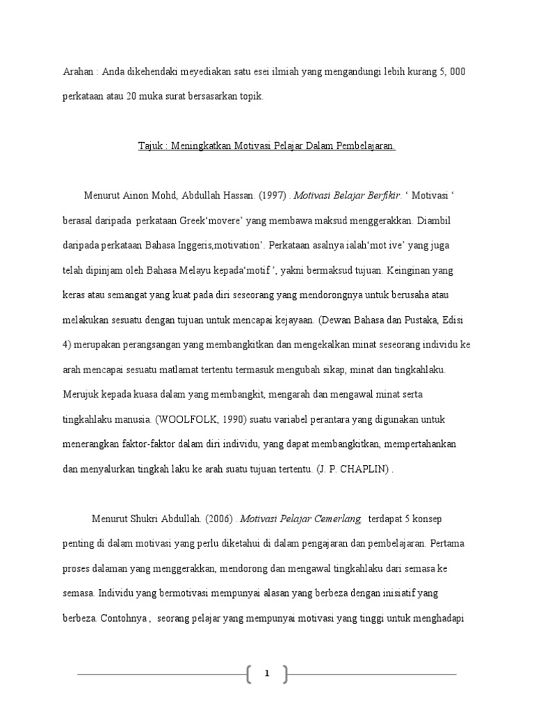 Saya akan memperjuangkan meskipun menyita waktu lama untuk menggapainya. Hari esok dimiliki oleh orang-orang yang mempersiapkan dirinya sejak hari ini Malcolm X. Objektif dan Persoalan Kajian Secara terperinci kertas kerja ini adalah bertujuan untuk mencapai objektif iaitu mengenal pasti tahap motivasi pelajar sekolah menengah.